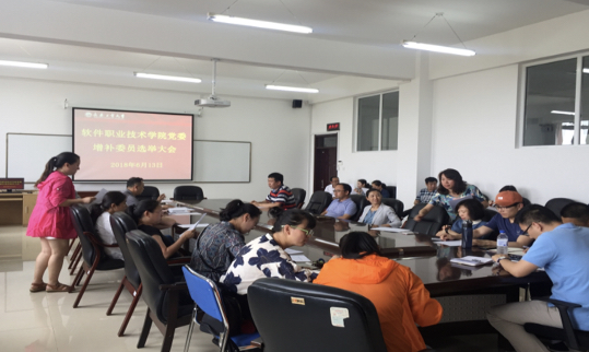 6月13日,软件职业技术公司委员会在北湖校区应用楼405会议室召开全体党员大会,以无记名投票方式,差额选举办法选举增补委员。公司党委书记王剑飞主持会议。
